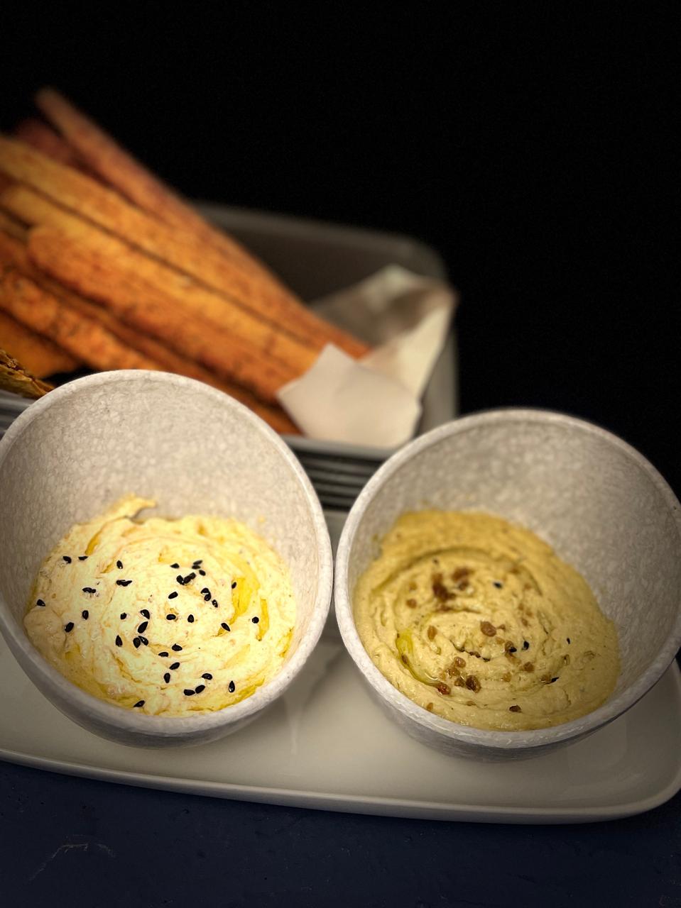 Creamy lemon dip. Olives with cashews.